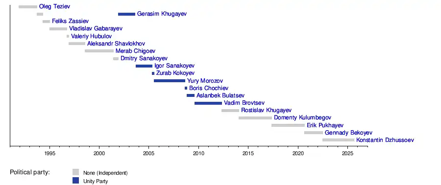 December 2001 August 2003 1 year, 8 months Unity Party Eduard Kokoity