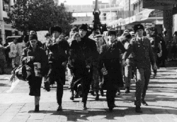 In the 1950s the newspaper reappeared as Prosh. The name was derived from the inability of inebriated students to pronounce the word “procession” without slurring.[7] Over the decades of the Prosh procession through Perth, various floats and vehicles of dubious form and function passed through the centre of the city.[7]