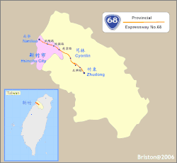 Provincial Highway 68 (Chinese: 台68線) is an expressway, which begins in Hsinchu City at Nanliao on the Provincial Highway No. 15 and ends in Zhudong on Zhongfeng Road (Provincial Road No. 3).