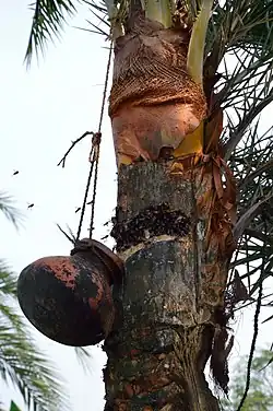 Flying foxes consume 25–35% of their body weight daily.[52] They are generalists that will consume a variety of items to meet their nutritional needs. Food items include fruit, flowers, nectar, and leaves.[53][54] They will sometimes deliberately consume insects such as cicadas as well.[55] In Australia, eucalypt blossoms and pollen are preferred food sources, followed by Melaleuca and Banksia flowers [56] They feed on a wide variety of crops as well, causing conflicts with farmers. Crops eaten by flying foxes include sisal, cashew, pineapple, areca, breadfruit, jackfruit, neem, papaya, citrus, fig, mango, banana, avocado, guava, sugar cane, tamarind, grapes, and more.[57]