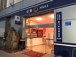 Public security bureaus and public security departments act as the main civilian police agency of their city or province, respectively.[1] Under public security bureaus are police stations (Chinese: 派出所; pinyin: pàichūsuǒ).[4]