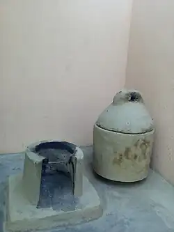 The traditional name of the stove in the Punjabi language is chulla.[58] Traditional houses also have ovens (wadda chulla or band chulla) that are made from bricks, stones, and in many cases clay. Older communities in Punjab also used earth ovens (khadda chulla), but this tradition is dying out now.