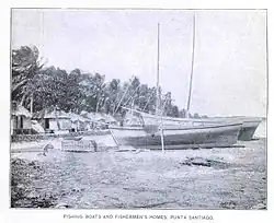 The fishing village of Punta Santiago was originally called Playa de Humacao as it was the closest beach to Humacao Pueblo, the historic and administrative downtown area of Humacao.[6] The community of Punta Santiago used to be part of two former barrios of Humacao, one called Humacao Playa and the other called Mabú. By the end of the 19th century barrio Mabú had been eliminated and incorporated into barrio Playa, now renamed Punta Santiago after the geographical headland or point (punta) where the fishing village is located.[7]