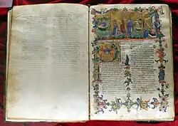After being introduced to humility, Dante and Virgil meet the souls of the proud, who are bent over by the weight of huge stones on their backs.[37] As they walk around the terrace, they are to profit from the sculpted examples of humility. The first of these souls is Omberto Aldobrandeschi, whose pride lies in his descent ("I was Italian, son of a great Tuscan: / my father was Guiglielmo Aldobrandesco"[38]), although he is learning to be more humble[39] ("I / do not know if you have heard his name"[40]). Oderisi of Gubbio is an example of pride in achievements—he was a noted artist of illuminated manuscripts.[39] Provenzano Salvani, leader of the Sienese Ghibellines, is an example of pride in dominating others[39] (Canto XI).