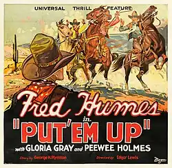 Put 'Em Up is a 1928 American silent Western film directed by Edgar Lewis and starring Fred Humes, Gloria Grey and Gilbert Holmes.[1]