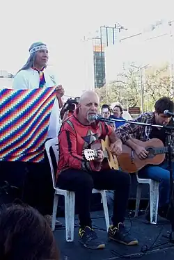 On May 27-29, 2015, the First National Summit of the Native Peoples was organized and summoned by Qopiwini in the House of Nazareth, Carlos Calvo 3121, Autonomous City of Buenos Aires. They discussed benchmarks with regards to human rights and resistance facing the civic-military dictatorship. A school-style orange poster written by hand indicates that this was the headquarters of the meeting.[3] Inside the wide room, there were groups of ten in circles, half inside the room, while the other half was in the garden.[4] There was a presentation to about one hundred delegates and authorities of twenty-five native villages from seventeen provinces, between them Missions, Chaco, Formosa, Salta, Jujuy, Tucumán, San Juan, Buenos Aires, Mendoza, Neuquén and Río Negro.[4] There the gathered representatives from other villages and communities shared similar experiences of situations that existed in different territories. On the 29th, the conclusions of the meeting were made known and the steps to be followed were established. The final day benefited from the presence of members from the Confederation of Native Nationalities of the Ecuador (CONAIE) and representatives from human rights organizations.[5] After the summit meeting, a number of ethnic leaders marched through the streets of Buenos Aires, accompanied by Nobel Peace Prize Laureate Adolfo Pérez Esquivel and Pablo Pimental of the Permanent Assembly for Human Rights. A small group went to government house to hand in a petition, but after a long wait the government declined to receive them.[6]