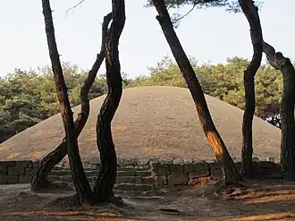 Queen Seondeok died on February 20, 647 (January 8, 647 in the lunar calendar) shortly before Bidam's rebellion was completely suppressed. There is no known record identifying the exact cause of her death, but Queen Seondeok was known to have had an unspecified illness shortly prior to her death, and this illness is most commonly theorized as the cause of her death. Some historians state it is also possible she died partly out of shock that Bidam had instigated a rebellion against her. Queen Seondeok was buried in a tomb on Nangsan, one of the sacred mountains in Gyeongju.[16] After Queen Seondeok's death, her cousin was then named as the next female ruler of Silla, and became Queen Jindeok.