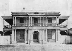 The QNB, established in Brisbane in 1872 by a group of prominent Queensland businessmen, flourished during the last quarter of the 19th century. In the 1870s and 1880s it was patronised by Sir Thomas McIlwraith and Sir Arthur Hunter Palmer, and for 42 years, from 1879 until 1921, the QNB held the Queensland Government's banking account. Despite financial scandals and collapse in the early 1890s, the QNB contributed substantially to the development of North Queensland, lending generously to mining, pastoral and sugar interests. It was the third bank to establish a branch in Townsville, in a small timber cottage in 1873. In 1875, the QNB purchased a site in Wickham Street, on which larger premises were erected in 1876. This building was destroyed by fire in 1877, following which the bank operated from temporary rented premises until the present Flinders Street building was completed in 1879.[1]