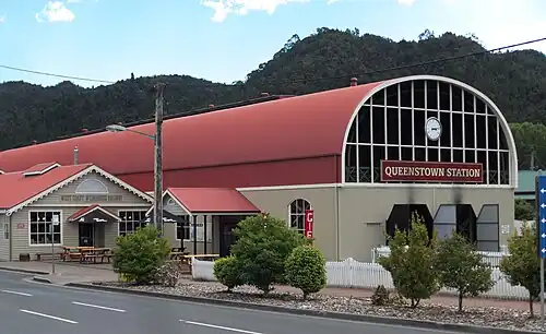 Queenstown in Western Tasmania has had two railway stations. The original was built for the railway built for the Mount Lyell Mining and Railway Company, and lasted until the closing of the railway line in 1962. The newer station was built for the re-built railway, the West Coast Wilderness Railway.[1]
