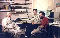 After the end of 1963 Proske worked as a freelance film producer and journalist-commentator. Through production contacts with Studio Hamburg he was nevertheless able to continue working on the popular science series "Auf der Suche nach der Welt von morgen" ("Seeking tomorrow's world") which had originally launched in 1961. In the end there were 81 programmes which were highly successful not just in West Germany, but internationally.[1][15] In 1965 he produced a 13 part series for NDR's Third Channel called "Ausblick auf die Zukunft" ("Future outlook") and in 1967 another 13 part series about Microbiology entitled "Die neue Welt der Biologie" ("The new world of biology").[1][16] He also made a large number of corporate films.[17] In 1976 he set up his own television production company, "Projekt Studio Rüdiger Proske GmbH".[1][18] which concentrated on documentaries and company training/promotional films.[19] Private sector clients included Esso, Siemens, Volkswagen and Mercedes-Benz. In the public sector he produced films for the Ministry for Education and Research and the Interior Ministry: the European Union was another client. His last blockbuster television series, produced and transmitted over a couple of years between 1987 and 1989, was an 18 part series entitled "Mitten in Europa – Deutsche Geschichte" ("In the heart of Europe – German history").[1] Proske said he saw the series as his own contribution to helping Germany rediscover her lost identity: "We should understand where we came from and where we could be going".[a][20]