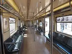 R40s 4280–4281 (originally numbered 4380–4381) are preserved for the New York Transit Museum.[2][22] They were restored to operating status in 2013–2014 and have been operating on New York City Transit Museum-sponsored excursions since August 2014, specifically on the Train of Many Metals (TOMM). Before cars 4280–4281 were selected for preservation, cars 4192–4193 were temporarily displayed at the New York Transit Museum in 2008, but they were later stripped and reefed.[23][24]