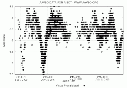 2. ^ a b "GCVS Query=R Sct". General Catalogue of Variable Stars @ Sternberg Astronomical Institute, Moscow, Russia. Retrieved 2010-11-24.
