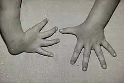 - ^ a b c d Bates SJ, Hansen SL, Jones NF (2009). "Reconstruction of congenital differences of the hand". Plast Reconstr Surg. 124 (1): 128e – 143e. doi:10.1097/PRS.0b013e3181a80777. PMID 19568146. S2CID 13262697.
