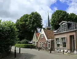 The Dutch Reformed church was built in 1814 as a replacement of its medieval predecessor.[5] When the stins Jongema State was built is unknown, but it was destroyed in 1515 by Saxon mercenaries, however the gate house remains. A 19th century villa is located at the former stins, but it is still surrounded by a double moat.[7] The forest around the estate are currently owned by It Fryske Gea and is a park with a large colony of rooks and herons.[6] The park has limited access during breeding season.[8]