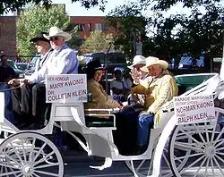 On August 20, shortly after the film crew incident and documentary, Klein uncharacteristically appeared at the morning CFCN news meeting and announced he would run for Mayor against Alger.[35] Klein's campaign started on rocky footing, he had little funds and limited knowledge of how to run a campaign or organize volunteers. He hired his friend Webster MacDonald, a lawyer, and labour organizer Ted Takacs to run co-manage his campaign, but neither was particularly adept. Finally he convened a group of 20 of his friends to discuss moving to the Alderman ticket, and after convincing Klein to continue to run for Mayor, they formed what became known as the "Klein Gang" a group of diehard supporters who remained with him throughout his political career.[38] Shortly afterwards he opened his campaign office in a small space donated by local businessman Jack Singer and his campaign began to take off. It was in this office he first met Rod Love, a recent University of Calgary political science dropout.[39] Love had initially offered to work for Alger's campaign, but was not offered a position he was interested in.[40] The Klein campaign continued to grow, although remained strained financially, with Klein only raising a total of $22,000.[39] In the week before the election Klein's public position improved as many estimated he was neck and neck with Alger, and ahead of the third candidate, Alderman Peter Petrasuk.[41] Alger the incumbent had accumulated $150,000 for the election, had strong support in the Chamber of Commerce, and a clean name.[42] His other opponent, Petrasuk was a prominent lawyer with a large ethnic voter base and significant fundraising capabilities.[42] Klein sought an endorsement from former Mayor Sykes who still held considerable sway amongst voters, Sykes declined as he had previously promised the other candidates he would not endorse any candidate, but agreed to an interview which he would say that Klein stood a chance in the election.[43][28] The final mayoral debate took place 36 hours before the polls opened, with Alger and Petrasuk battling over rising budgets while Klein ignored the topics and spoke of accountability, open government and making Calgarians proud of the city.[44][45]