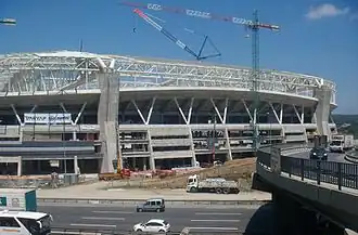 The construction of the stadium stopped twice a time. When Talu had financial problems once again, TOKİ cancelled the process in July 2009.[19] After termination of TOKİ-Talu agreement, TOKİ announced a new auction. Varyap-Uzunlar consortium won the auction[20] and construction restarted in September 2009. Galatasaray and TOKİ had an agreement that the stadium would be opened without retractable roofs which will be installed at the end of the season.[21]