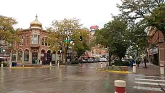The historic district spans across multiple blocks in the center of downtown Rapid City. 10 acres (4.0 ha) of Main, Saint Joseph, 6th, and 7th Streets formed the rough boundaries of the original 1974 listing, with 38 properties on both sides of the streets included, although some buildings on 5th Street were also included. These buildings were constructed between 1881 and 1924.[2] The district expanded by 11 acres (4.5 ha) in 1998 to encompass 50 contributing and 22 non-contributing properties and pushed the western and eastern boundaries out to Mount Rushmore Road and 5th Street, respectively. The years of significance were also increased to between 1876 and 1948.[3]