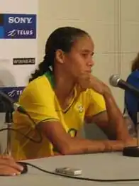After making her national team debut against Russia at the 1998 Women's U.S. Cup,[2] she played for the Brazil women's national football team at the 1999 FIFA Women's World Cup and 2000 Summer Olympics.[3]
