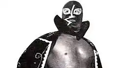 In 1960, he appeared under the name "El Rayo" and in 1962, he finally appeared as "Rayo de Jalisco", wearing his trademark black mask with a lightning bolt across the face.[4] Success soon followed for Rayo, winning the National Wrestling Alliance Middleweight Championship and Occidente Welterweight Championship.[6][7] Rayo would also win a series of matches against another famous luchador Chino Chow. He unmasked his rival La Bestia (The Beast) in a mask vs. mask match in 1964.[1] Rayo would become the tag team partner of the legendary Blue Demon and was named "The Best Wrestler" of 1963.[4] Rayo feuded with Blue Demon near the end of both their careers. Blue Demon actually came out of retirement to face Rayo in a mask vs mask match. Rayo was defeated, revealing his face to the world as Maximo Linares Moreno.[8]