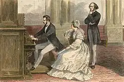 Mendelssohn's eighth visit occurred in 1842 after the accession of Queen Victoria to the throne. Her husband Prince Albert was a keen organist and, under his influence, the music of Bach started to be performed at royal concerts. On the second of his two invitations to Buckingham Palace, Mendelssohn improvised on Albert's organ and accompanied the queen in two songs by Fanny and himself. Between these two visits, he once more performed the St Anne prelude and fugue, this time before an audience of 3,000 in Exeter Hall in a concert organized by the Sacred Harmonic Society. In London there were few church organs with German pedal boards going down to CC: those which did included St. Paul's Cathedral, Christ Church, Newgate and St. Peter's, Cornhill, where Mendelssohn frequently performed solo recitals. During his last visit in 1847, he once more entertained Victoria and Albert in Buckingham Palace in May before playing a few days later the prelude and fugue on the name of "BACH" BWV 898 on the barely functional organ in Hanover Square Rooms during one of the Ancient Concerts organized by Prince Albert, with William Gladstone in the audience.[82][78][62]