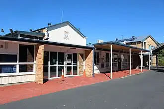 The school grounds have also increased in size over time. By 1974 the school reserve had been expanded to 3.13ha to incorporate an opportunity school established to the east of the high school in 1964 (on part of the 1885 police reserve).[83][84][85][86] A residential lot, south of the school, was added to the grounds in 1980, providing access to Irene Street, and in 1989 land was added at the northeast corner of the school grounds, to create a total area of 3.37ha.[87][88][89] In 1960, 3.0ha of land north of Klingner Road, opposite Portion 490, was also obtained and later cleared as an additional sports ground.[90] This was subdivided in 1996, and the western half later became a TAFE campus.[91][1]