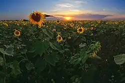 Sunflower field in Ishimbaysky District. Bashkortostan has a developed agriculture
