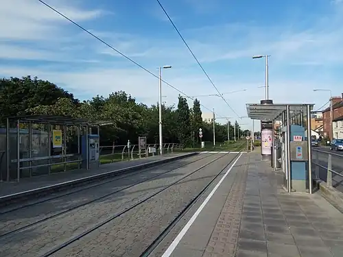 Rialto is a stop on the Luas light-rail tram system in Dublin, Ireland. It opened in 2004 as a stop on the Red Line.[1] The stop is at the southern side of St. James's Hospital, adjacent to James's Walk, near the areas of Rialto and Kilmainham.[2]