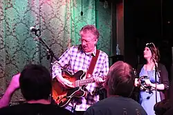Less than a month after the band's formation, Buffalo Springfield secured a six-week residency at the Whisky a Go Go. As Furay described the experience: "The Whisky was as good as we ever were, as dynamic as we ever were, as close as we ever were...because we were working every day. [...] We were tight, we were good, and we felt we were good."[21] During performances, Furay would typically be positioned center stage, playing rhythm guitar and singing whilst being flanked by Stills and Young on each side.[22] In partial imitation of Roger McGuinn, Furay often played a 12-string Gibson ES-335.[23]