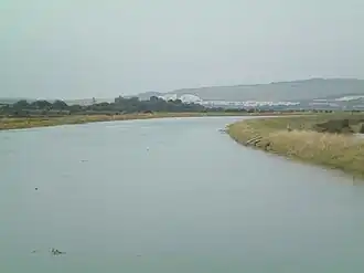 The new channel was completed by 1539[28] and drained the Levels so that much of the valley floor could be reclaimed for pasture. However, shingle continued to accumulate and so the mouth of the Ouse began to migrate eastwards again. In 1648 the Ouse was reported to be unfit either to drain the levels or for navigation.[29] At some time between 1676 and the publication of an Admiralty chart in 1698, the river flowed along the back of the shingle bar and broke through into the sea about 0.5 miles (0.8 km) further to the east, at the site of a tide mill.[30] The outlet at Newhaven had been reinstated by 1731,[31] when the Newhaven Harbour Commissioners were established by act of Parliament. The engineer John Reynolds carried out some work for them on the piers at the entrance to the river, and constructed a sluice across it at Piddinghoe between 1731 and 1733, working for the Drainage Commissioners, but that was short lived, as it was damaged in 1736 and taken down rather than repaired.[32] By the 18th century the valley was regularly inundated in winter and often flooded in summer.[22]