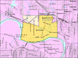 Riverside is a city in Platte County, Missouri, and part of the Kansas City metropolitan area in the United States. The population was 4,013 at the 2020 census.[4]