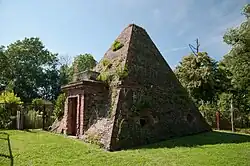 There is a pyramid-shaped tomb here, built in 1780 during the German-Prussian era when the village was called Ober-Rosen. It was designed by Carl Gotthard Langhans (who also designed the Brandenburg Gate) and housed the tombs of Prussian general Karl Adolf August von Eben und Brunnen and his closest relatives.