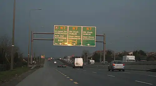 The original design (1983–1989) of Irish motorway signs were a simpler version of the UK design.[9] These signs were only ever in use on the M7 Naas Bypass and M1 Airport Motorway.