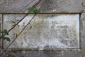 The simple monument to Robert Dundas, 2nd Viscount Melville, Dundas vault, Old Lasswade Kirkyard