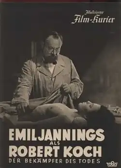 Robert Koch (German title: Robert Koch, der Bekämpfer des Todes, English title: Robert Koch: The Battle Against Death) is a 1939 Nazi propaganda film directed by Hans Steinhoff and starring Emil Jannings, Werner Krauss and Viktoria von Ballasko.[1] The film was a biopic of the German pioneering microbiologist Robert Koch (1843–1910). It was shot at the Johannisthal Studios in Berlin and premiered at the city's Ufa-Palast am Zoo. The film was made by the Tobis Film company, and was also distributed in the United States by UFA.