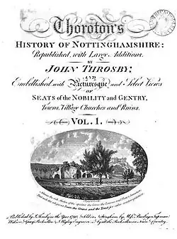 - Thoroton, Robert (1790). Throsby, John (ed.). Thoroton's History of Nottinghamshire: Republished With Large Additions By John Throsby. Vol. 1. Nottingham: J Throsby. — on the website British History Online