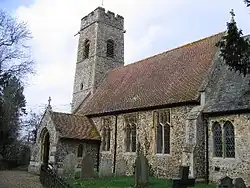St Mary's church has a noticeably tapered tower, Tudor windows and a Victorian interior.[9] It also contains a bronze memorial to those who both served and died in World War I.[10] The churchyard supposedly contains the overgrown remains of Rockland St Margaret.[11]