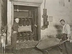 Just after 1 am on May 12, 1919, the factory watchman spotted smoke on the second floor of the shipping department and, tracing it to its source, discovered a fire.[4] The department stored large quantities of cocoa beans and finished chocolate bars in burlap sacks and it was later thought that spontaneous combustion within these materials caused the fire.[2] The watchman alerted the New York City Fire Department by means of an alarm in the building and crews from a nearby firehouse were on site within minutes.[4]
