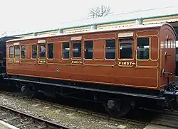 | LBSCR | 7598 | Bogie First | Built in 1903. Returned to traffic in 1999 and won the 'Best Coach of the Year' award for 2002/03. After some time awaiting tyre turning, the coach has now returned to regular service. |