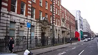 New facilities for the merged entities were built on Great Portland Street and were opened by King Edward VII in July 1909.[2] During the First World War, the hospital in Great Portland Street became an emergency hospital for the military and from early 1918 also accommodated discharged disabled soldiers.[2] The Great Portland Street site continued to accommodate short-term in-patients after the war.[2]