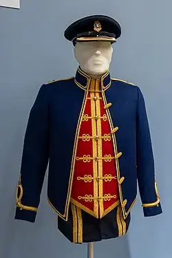 The regiment wears a brown beret, similar to that worn by the King's Royal Hussars, with a square black patch behind the cap badge to represent the RTR affiliation. Until July 2014, each squadron wore the cap badge of its antecedent Yeomanry regiment, meaning that, unlike most other British Army regiments, the RWxY still had four cap badges.[12] On 5 July 2014 all squadrons, including Y Squadron (formerly A Squadron the Royal Yeomanry), adopted a single unifying cap badge featuring the white dragon of England.[11]