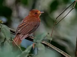 - ^ a b c d e f g Lebbin, D. J. (2020). Rufous Twistwing (Cnipodectes superrufus), version 1.0. In Birds of the World (T. S. Schulenberg, Editor). Cornell Lab of Ornithology, Ithaca, NY, USA. https://doi.org/10.2173/bow.ruftwi1.01 retrieved February 25, 2025