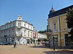 Ruse is known for its 19th- and 20th-century Neo-Baroque and Neo-Rococo architecture, which attracts many tourists. It is often called the Little Vienna.[2][3] The Ruse-Giurgiu Friendship Bridge, until 14 June 2013 the only one in the shared Bulgarian-Romanian section of the Danube, crosses the river here.