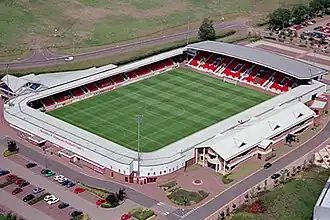 Rushden & Diamonds played their home games at Nene Park, which was located on the outskirts of Irthlingborough, Northamptonshire adjacent to the A6,[19] the stadium had a capacity of 6,441 (4,641 seated).