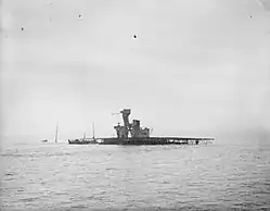 The ship was sold in September 1939 to the Admiralty for military service during the Second World War, and was refitted to be disguised as the British carrier HMS Hermes.[1] In this form she carried the name "Fleet Tender C". On 4 June 1941, while on course for Chatham Docks in Kent to be converted back to a cargo vessel, she was attacked by German aircraft off the English coast near Cromer, Norfolk. While trying to evade the attack she struck a submerged wreck (the Ahamo at 53-22N, 0-59E which had struck a mine on 8 April that year) and ran aground. She was intended to be salvaged and refloated; however, before this was possible the beached ship was torpedoed by German E-boats. The crew were taken off by the rescue tug Sabine and landed at Grimsby.[3]