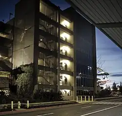 The Terminal A Parking Garage opened on September 23, 2004. The six-story structure had covered parking, a short walk to the terminal and public art ("Flying Gardens" by Dennis Oppenheim) installed outside the garage,[18] and "Flying Carpet" by Seyed Alavi, installed in the connecting walkway.[14][19]