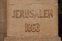 Construction of the foundation began on June 28, 1861, the Feast of the Sacred Heart, and concluded in 1863. On December 8, the Feast of the Immaculate Conception, with surrounding Chinese houses and streets decorated, a grand ceremony was held, attended by the Viceroy of Liangguang, all senior Mandarins, a detachment of 300 Manchu troops, all consuls in Canton as well as the missionaries and a score of priests. The bishop and the consul of France, Baron Gilbert de Trenqualye, delivered speeches. Two foundation stones were blessed and laid. The words "Jerusalem 1863" were engraved on the east one and "Roma 1863" on the west one, in reference to the Catholic Church's origin in Jerusalem in the east and headed on Earth by the Pope in Rome in the west. One kilogram of soil taken from Rome and one stone from Jerusalem were laid under the respective foundation stones.