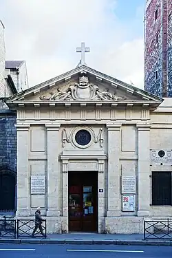 A plaque on the facade and another in the interior commemorates the visit of Jeanne d'Arc to the chapel on September 7, 1429. The chapel at that time was well outside the walls of Paris, She attended mass and took communion. The next day she led an assault on the city, in an unsuccessful attempt to expel the British and their Burgundian allies.[5]