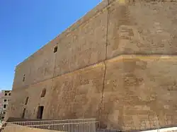 In 1686, during the magistracy of Gregorio Carafa, a small building known as Dar Annona was grafted on the east flank of the cavalier. The building originally housed the Università dei Grani,[6] and is now a post office.[7]
