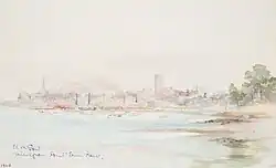 Point Erin, to the western side of the bay (underneath the Auckland Harbour Bridge) was the location of a Māori pā called Okā, or Te Koraenga ("the headland"). Tāmaki Māori traditionally used the pā as a fishing base during the summer shark fishing season.[6] Saint Marys Bay was known as Ko Takere Haere ("the split canoe hull"), recalling an incident where a waka that was being taken ashore by slaves broke.[6]