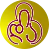 The trefoil of the Girl Guide membership badge is made of the letters d-i-a in the Georgian alphabet, stylized to look like an adult embracing children.